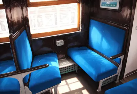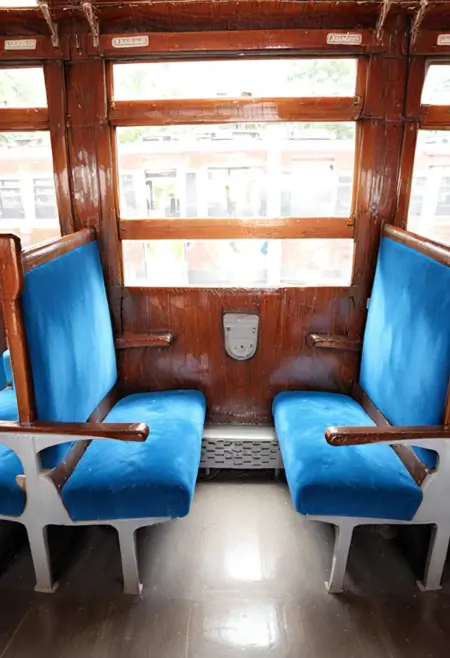 oha35w, train interior, scenery, chair, traditional media, window, indoors, wooden floor, couch,