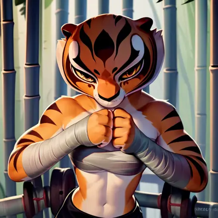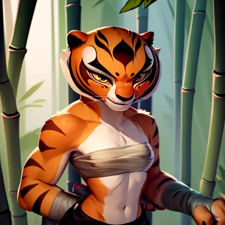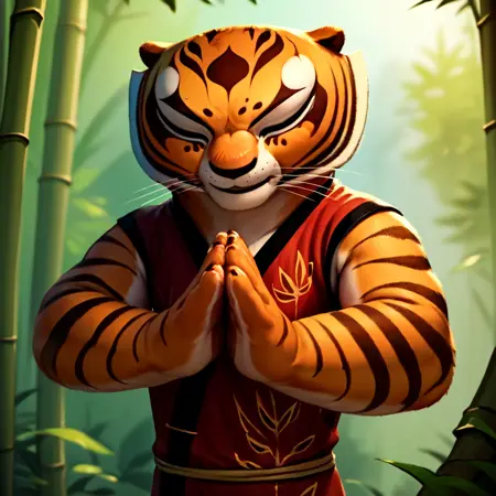 In the ancient valley of peace, Tigress, the fierce and disciplined master of Tiger Style Kung Fu, stood as the unwavering guardian. Born with unmatched strength and grace, she trained under the watchful eyes of Master Shifu, her heart hardened by a past she rarely spoke of. Despite her stoic exterior, deep within, she yearned for a connection beyond the dojo's walls. When the unlikely hero Po arrived, Tigress found her beliefs challenged, learning that true strength lies not just in power, but in unity and heart. Together, they forged a bond, protecting their home from those who threatened its tranquility.
