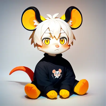 toys_mikus, fumo style, fumo, full body, white background, sitting