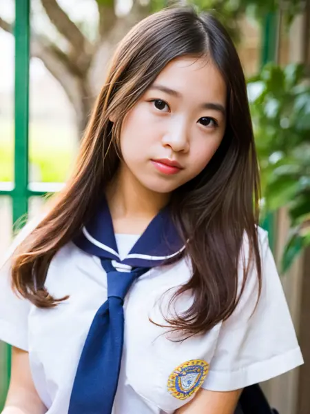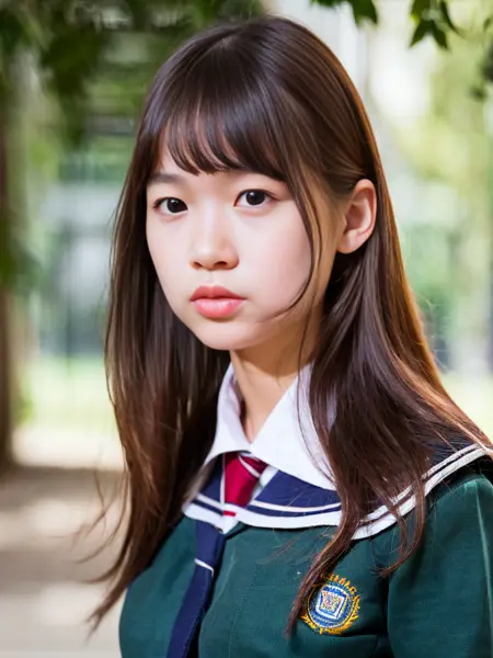 提示词:best quality, highly detailed, photorealistic, masterpiece, 1 lady, solo, school uniform, looking at viewer,