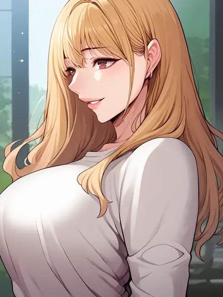 tag: 1girl, liya, breasts, blonde hair, long hair, solo, large breasts, brown eyes