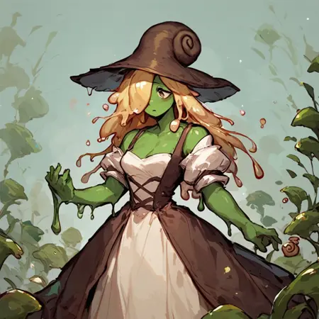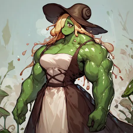 | トレーニングワード | green skin, slimy skin, dripping, sweatコピーしました! blonde, liquid hair, long hair, hair over one eyeコピーしました! brown dess, white dress, iron armguards, leather pouchコピーしました! muscular female, large muscles, large breasts, tight clothesコピーしました! futanari, large penis, dark nipplesコピーしました! |