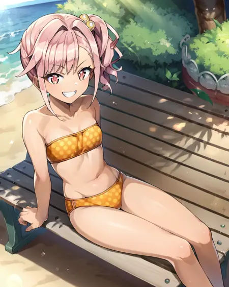 주황색 비키니, 점프릿 비키니, 스트랩리스 비키니, 노란 신발