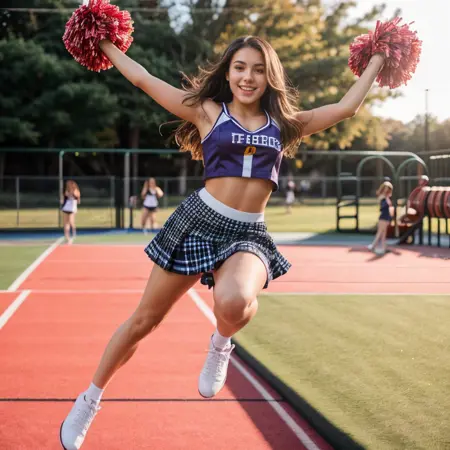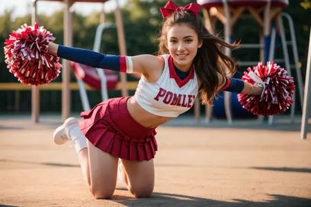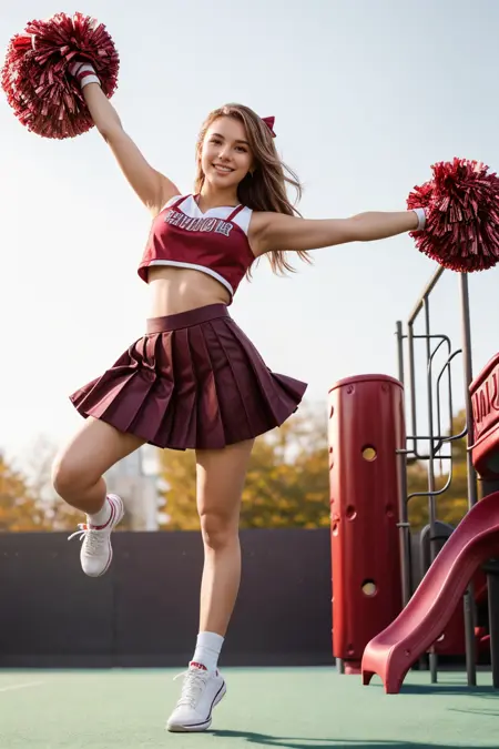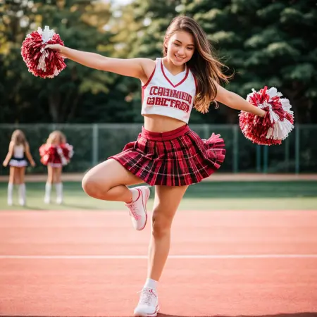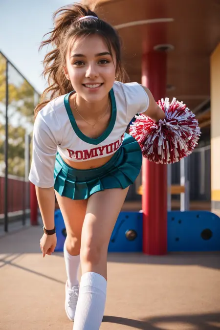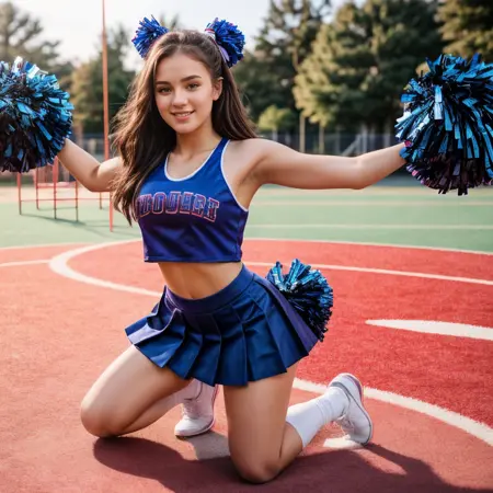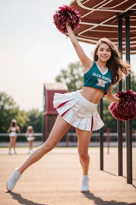 Prompt: cheerleader,pom pom \(cheerleading\),crop top,pleated upskirt,