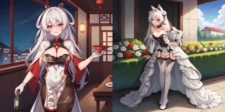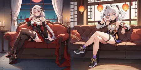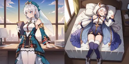 Disclaimer: If you examine the outfit properly, you'll notice that Theresa has white bodystocking covering her shoulders and probably her entire body. Well Ai is too dumb to realise that and thinks that the shoulders are well bare. No matter what I've tried, it doesn't want to generate it, so I gave up on it.