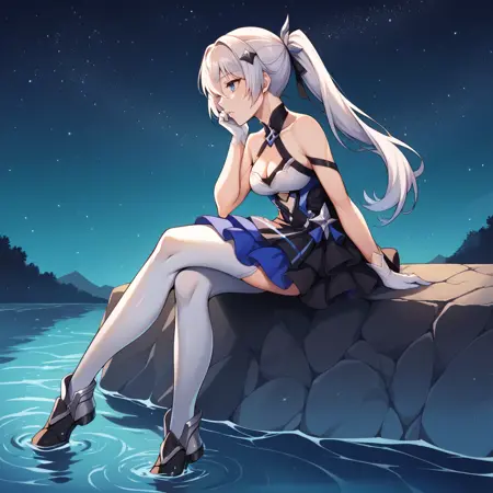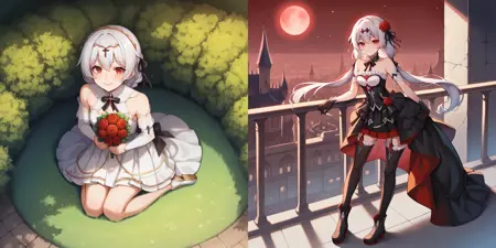 Disclaimer: So let me explain as I understand it: Luna's Wedding Outfit has Thigh Boots + Black Thighhighs, but because Ai can't understand how they go together it's inconsistent and sometimes it's either just white thigh boots or just black thighhighs/boots. So play around with weights and see how you like it or try to get the actual combo, which sometimes works and sometimes doesn't...