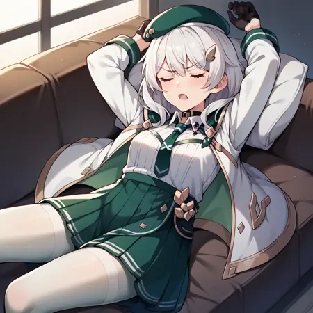 免责声明: 如果你仔细检查服装,你会发现 Theresa 身穿白色连体袜,覆盖肩膀,甚至可能全身。但 AI 太愚蠢,无法意识到这一点,总以为肩膀是裸露的。无论我如何尝试,它都不愿生成连体袜,于是我放弃了。