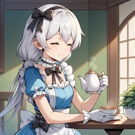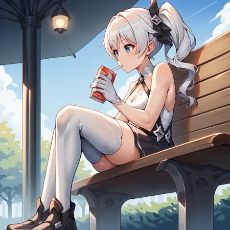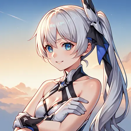 TeriTeri, white hair, blue eyes, theresa apocalypse, side ponytail,