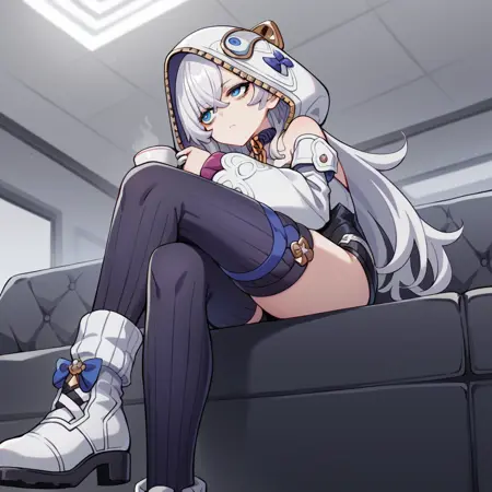 Teri,Fol002,Tr_Mit,Theresa Apocalypse,蓝眼,白发,护甲紧身衣,黑色紧身衣,吊颈,机械角,遮盖肚脐,无侧边服装,白色镶边,颜色错乱手套,单肘手套,护甲手套,白色手套,红色手套,黑色长筒袜,黑色护甲靴