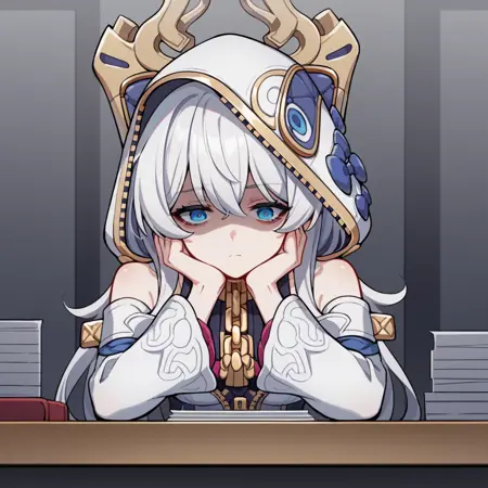 Teri_Teri, long hair, theresa apocalypse, white hair, side ponytail, hair ornament,