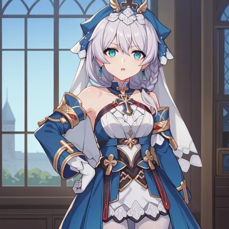 可选: 如需生成面纱版本,请添加 "nun veil";若图像中包含腿部,请添加 "white pantyhose, black footwear, boots",否则修女裙装会遮盖腿部。