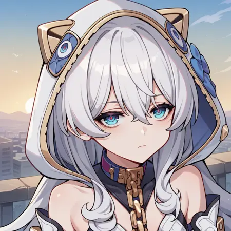 TeriSlepHi3,Tri_Def,睡眠眼罩,眼部遮罩,紫色面罩,白发,中长发,Theresa Apocalypse,蓝眼,粉瞳,紫色紧身衣,白色胸衣,连体衣,不匹配的腿部穿着,交叉吊带,吊颈,紫色项圈,丝带项圈,金链,拉链紧身衣,拉链拉环,十字架,十字拉链拉环,金色十字架,袖子过腕,拉链,动物头套,带帽斗篷,白色斗篷,超短裤,紫色连体袜,领圈,衣物下穿连体袜,多层衣物,衣物镂空,紧身衣下穿短裤,交叉肩带,白色肩带,可拆卸袖子,多层袖子,宽袖,白色袖子,侧编发,紫色蝴蝶结,帽子戴起,不对称腿部穿着,紫色长筒袜,有纹路长筒袜,单腿保暖套,白色鞋履,踝靴,