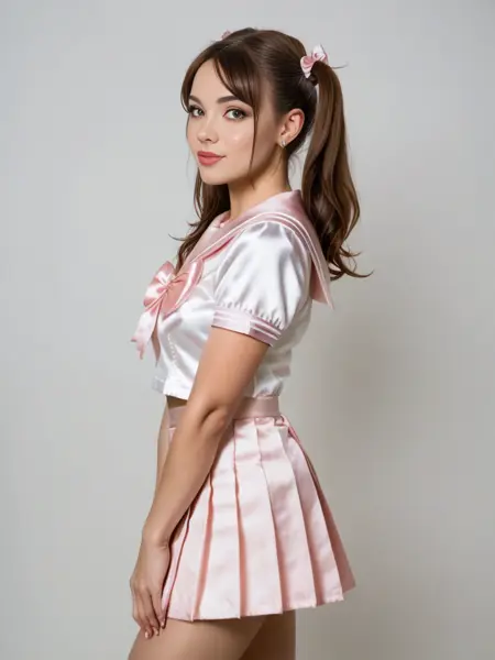 This lora is used for highly detailed satin schoolgirl uniforms for Pony realistic checkpoints. The default is light pink satin, but you should be able to modify the prompt for any color.