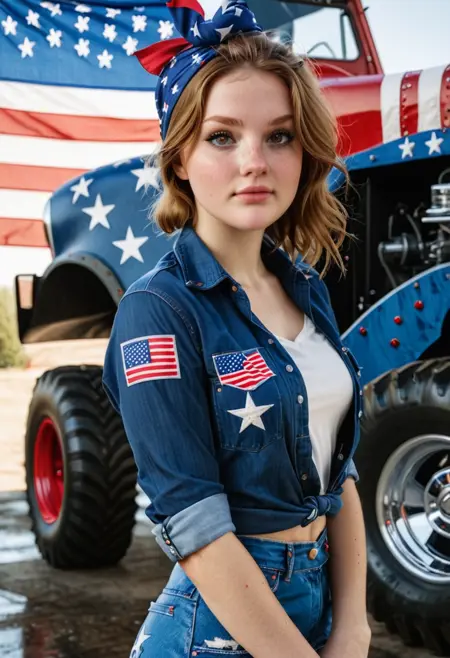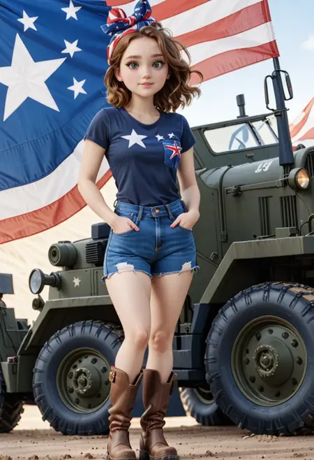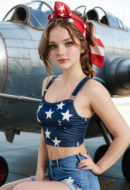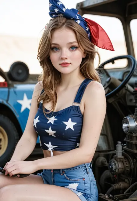 그녀는 비행기, 자동차, 엔진 작업을 즐기고, 군사기지에서 시간을 보내는 것을 좋아합니다. 흔히 미국 국기 테마의 밴다나, 카미/티셔츠를 입고, 데님 반바지와 50년대 스타일의 드레스를 사랑합니다.