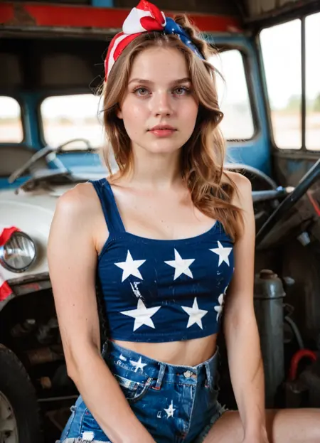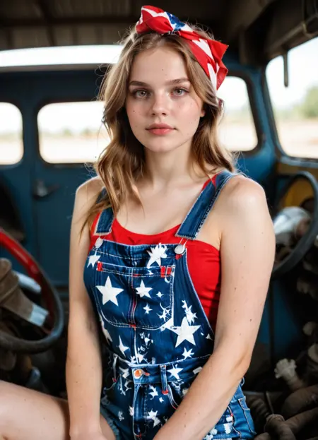 认识一下Jamie——这位热血的纯正美国女孩,是“铆工罗西”的近亲。她100%由AI生成,使用多个AI图像通过IP Adapter组合而成作为训练数据。
