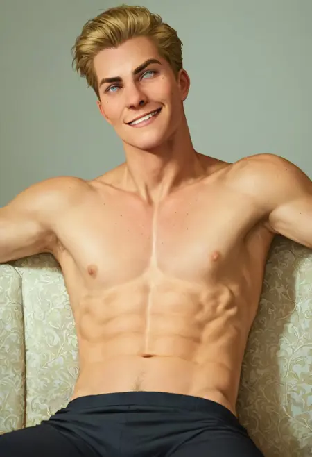 外見文: 金髪、短髪、目が見えない、目下のほくろ