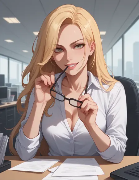 其他: 咬住眼镜(可能有效,也可能无效),诱惑的微笑,牙齿,注视观众,看向一侧,黑色镜框眼镜