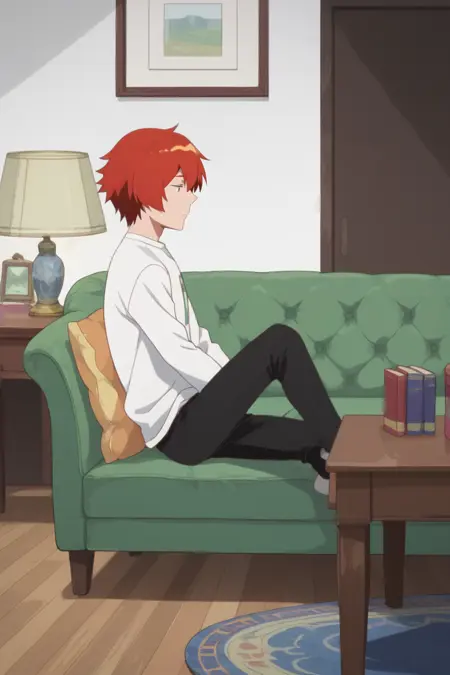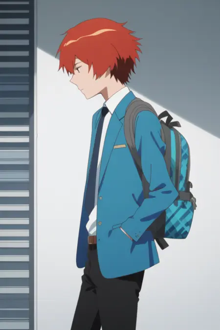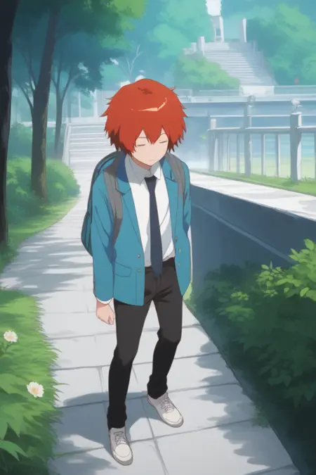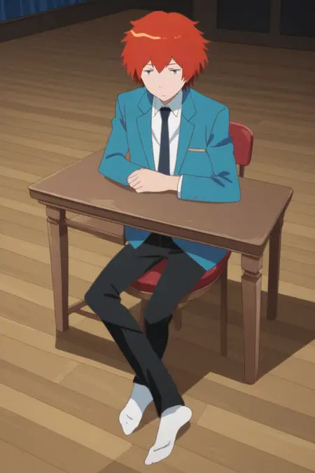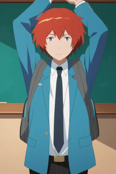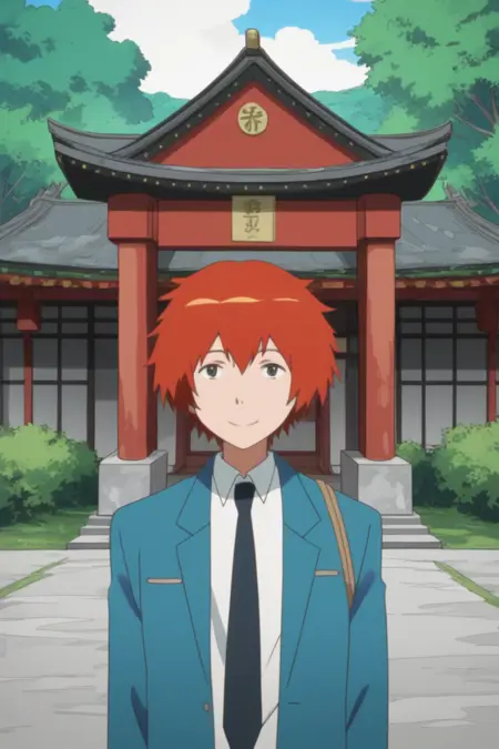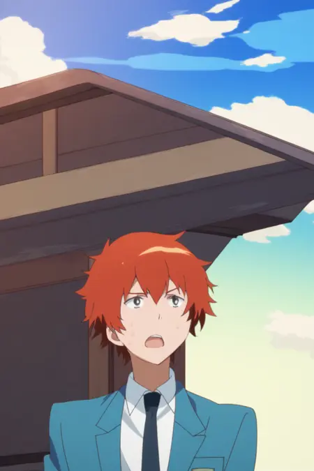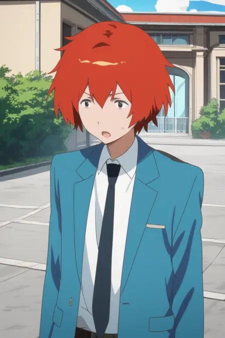 yuki sanada, red hair, grey eyes,