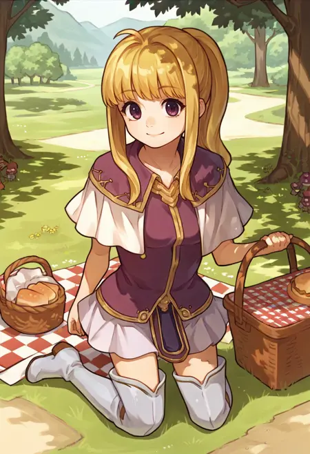 The above is geared towards her FEH appearance, you can get closer to her original artwork by using "white thighhighs" instead and adding these to the negative: leg armor, neck ribbon