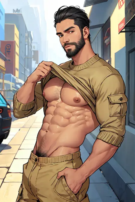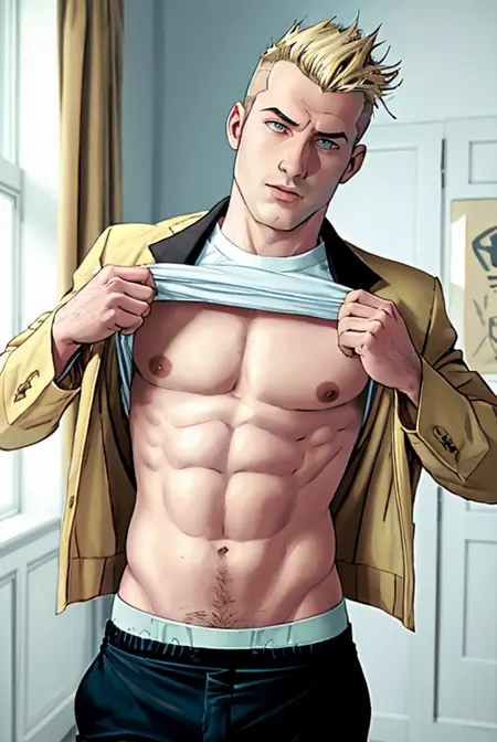 该LoRA虽仅用男性图像训练,但当使用“1girl, breasts”时,实际上对女性也有效。