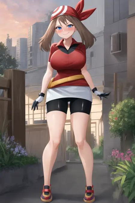主要触发标签为 may-rs。用于描述该服装的附加标签包括 bandana, collared shirt, two-tone gloves, fanny pack, bike shorts。如果不包含这些标签,或将其放入负向提示中,也会使生成图像中不出现对应的服装。