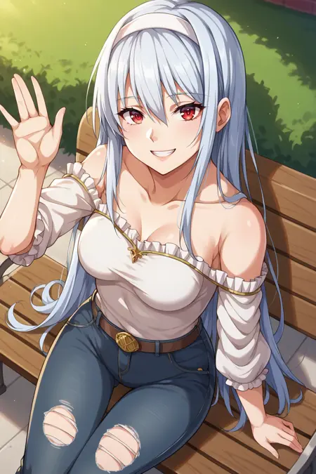 トリガー: KJOliora, 白髪, 赤い目, 長髪, 目の間の髪, 髪止め