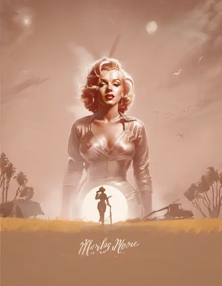 以marko-manev风格绘制的雷伊女士站在沙漠中、手持光剑的海报