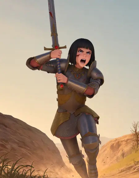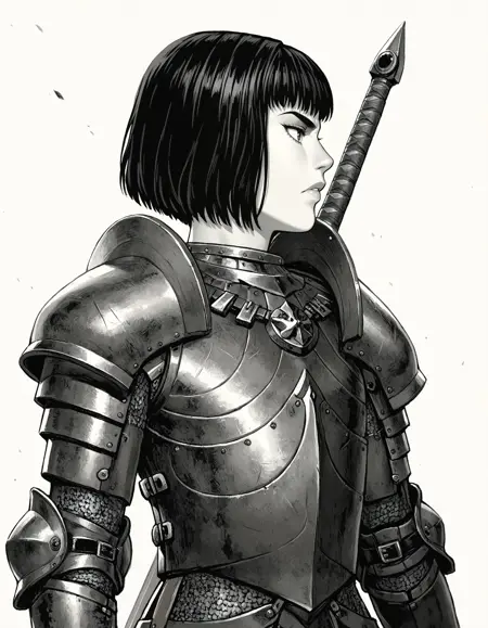 Repanse, black hair, blunt bangs, bob cut, armor,