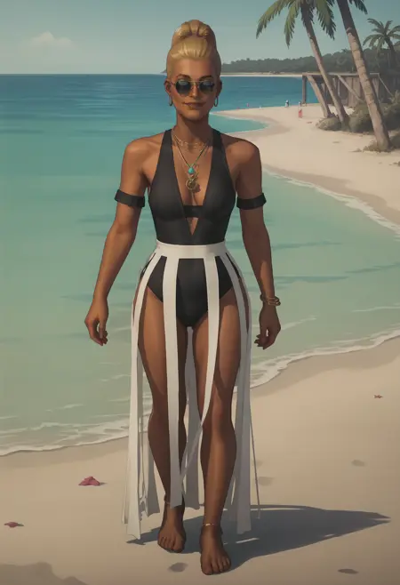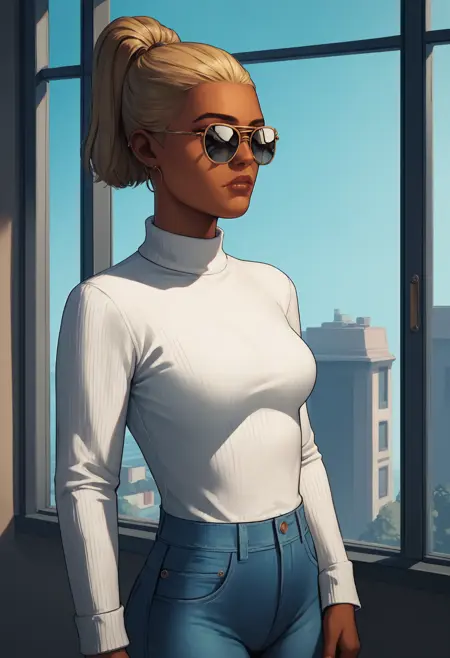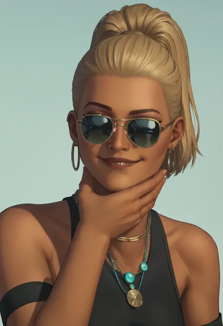 • 1girl, 深色皮肤女性, 深色皮肤, 金色头发, 马尾辫, 嘴唇