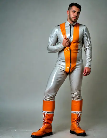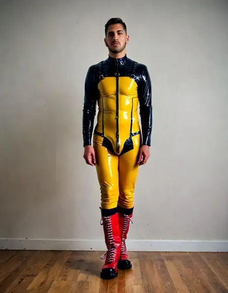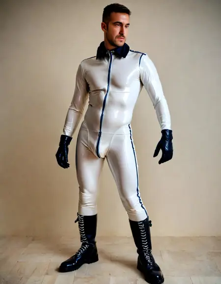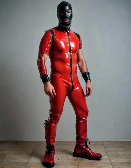 보상으로 제작된 남성 페티시 복장을 보여주는 LoRA입니다.