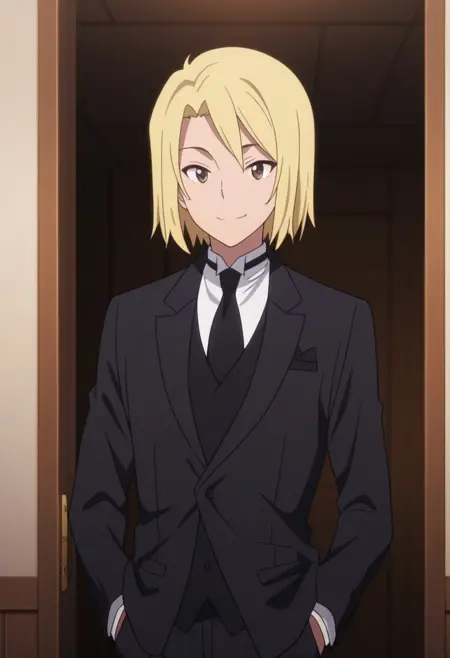 quenser, 1名男孩, 男性焦点, 单人, 棕色眼睛, 金色头发, 西装, 衬衫, 白色衬衫, 有领衬衫, 领带, 黑色领带, 背心, 黑色背心, 外套, 黑色外套,