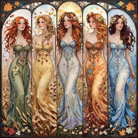 データセットは多様で、アール・ヌーヴォーの真の精神をアルフォンス・ミュシャ風のポートレートに限定せず、私の視点を通して捉えることを目指しています。