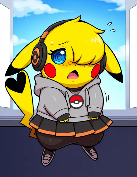 ピカチュウタグ: cosplay pikachu, blush stickers, black-tipped tail, cleft tail