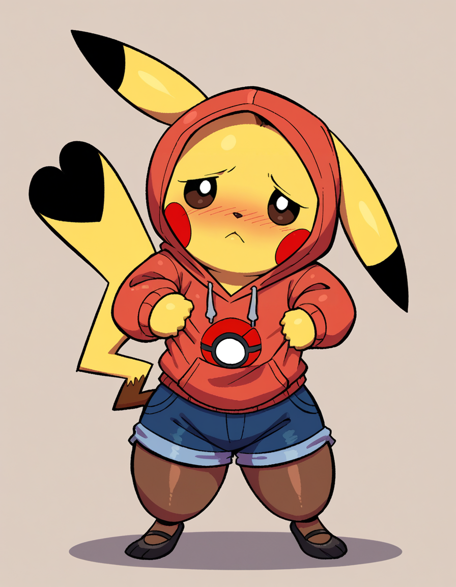 Pikachu Tags: cosplay pikachu, blush stickers, black-tipped tail, cleft tail**