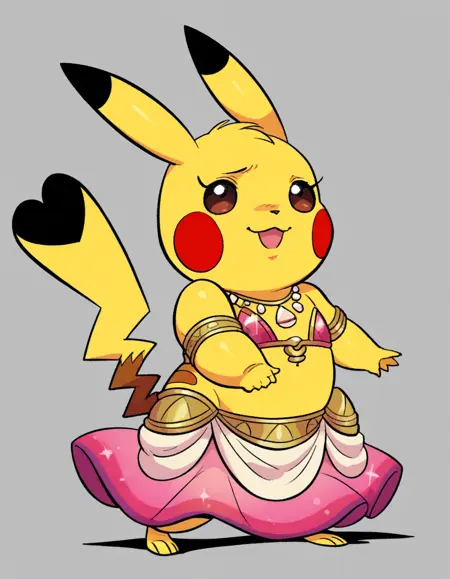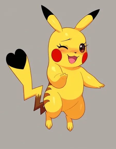 皮卡丘标签: 角色扮演皮卡丘、腮红贴纸、黑色尾尖、分叉尾巴