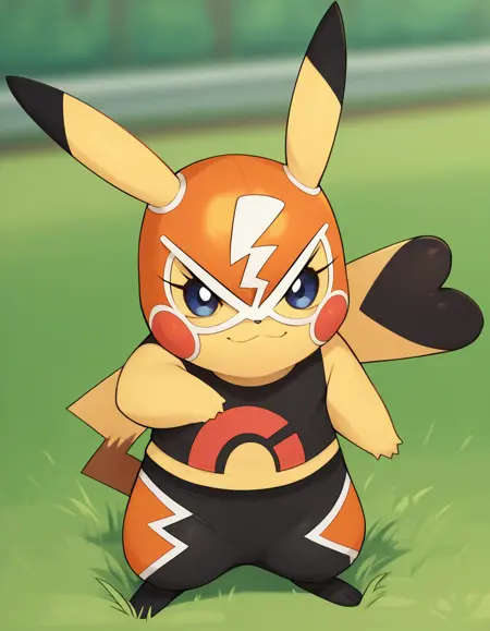 自由女神: pikalibre、露腹、紧身裤、摔跤面具、黑色衬衫、闪电标志、无袖衬衫、摔跤服、心形、图案长裤