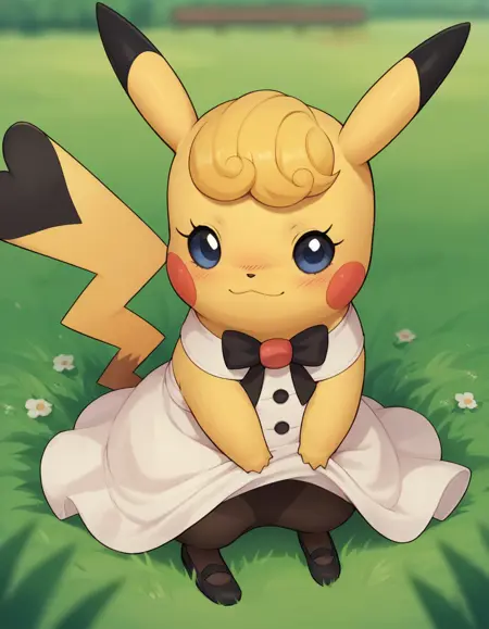 皮卡丘标签: 角色扮演皮卡丘、腮红贴纸、黑色尾尖、分叉尾巴
