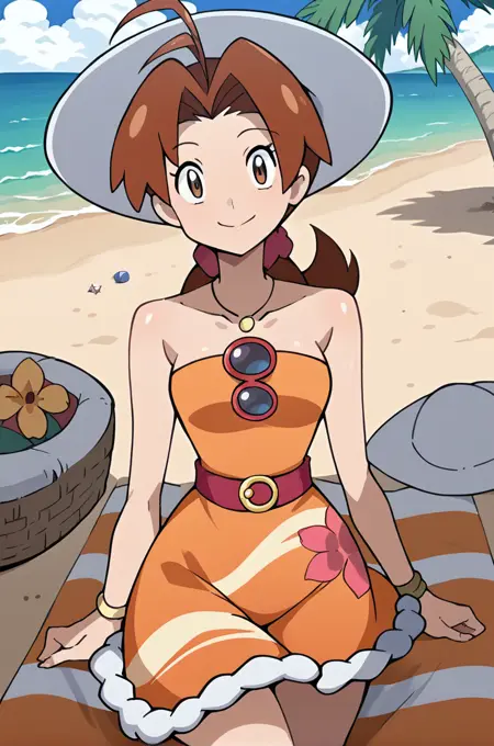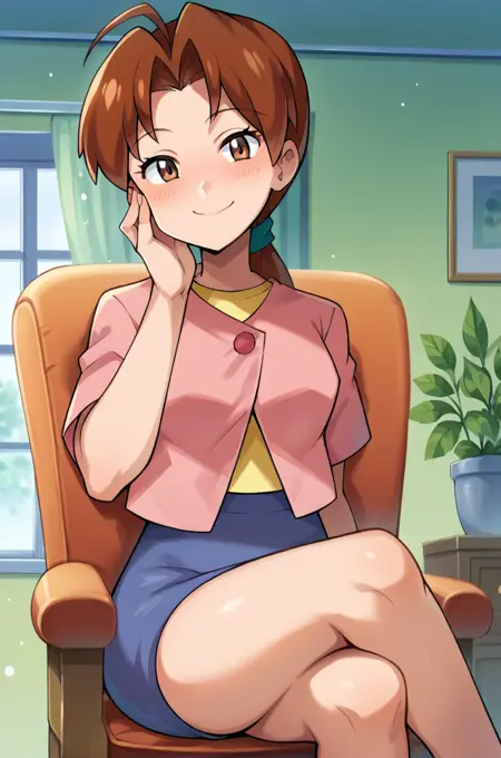 Trigger words: deliaketchum, brown hair, low ponytail, ahoge, brown hair