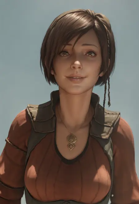 1girl, breasts, brown hair, short hair, lips, brown eyes