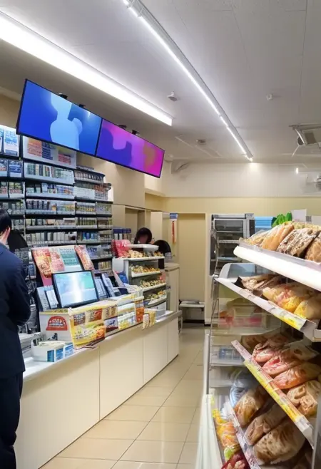 famima, scenery, indoors, japan, shop, shelf, real world location, cashier, monitor, tiles, tile floor,