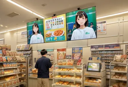 1973年に埼玉県狭山市に1号店がオープンした日本発祥の某コンビニエンスストアの店内と店員さんっぽい風景をもしかしたら描けるかもしれないLoRAです