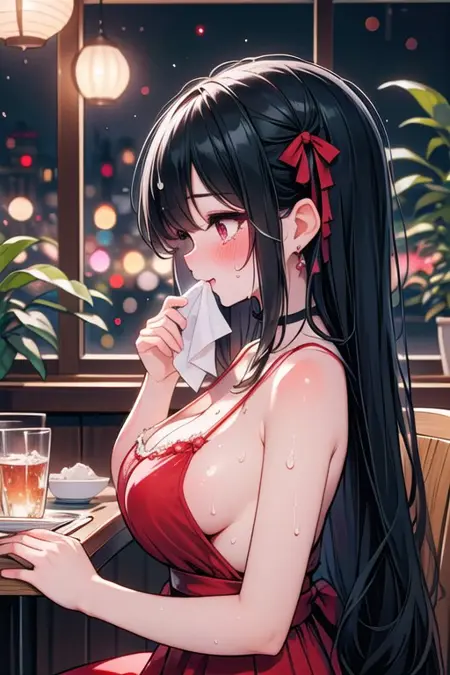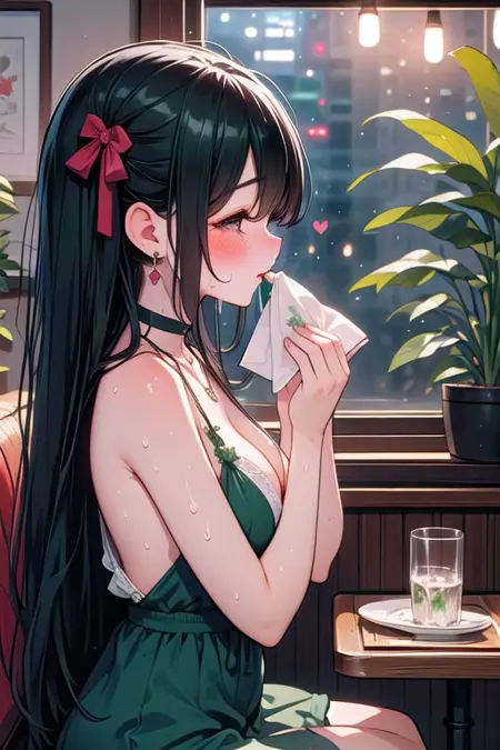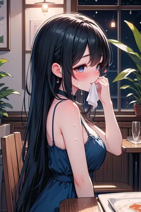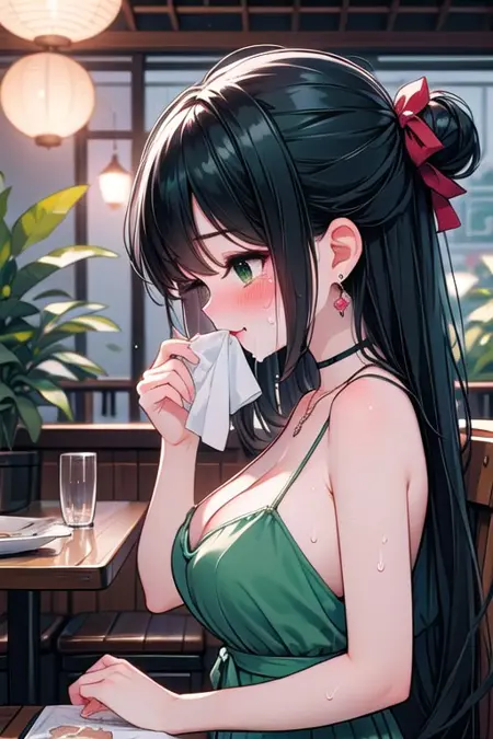 (彼女は濃厚で喉に詰まるような辛い白いスープを飲んだ...)