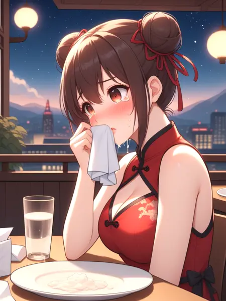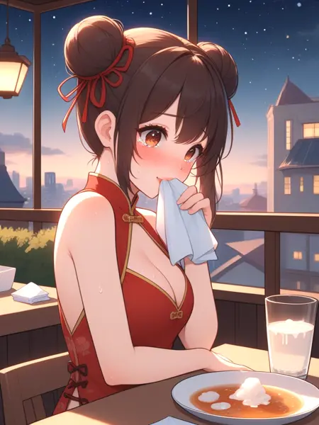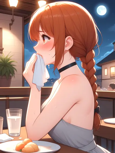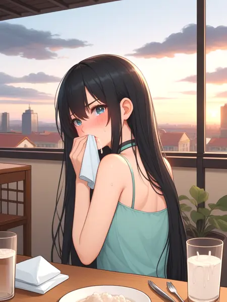 (彼女は濃厚で喉に詰まるような辛い白いスープを飲んだ...)