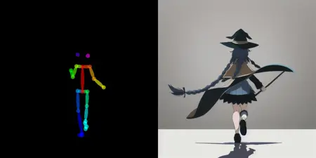 这些图像通过旋转动画3D模型,并从不同角度使用OpenPose生成动画中的骨骼姿态而获得。提供了两个不同的版本集合:一个版本包含原始OpenPose生成的图像(分辨率为1920×1080 或 1280×720,视动画而定);另一个版本包含裁剪为512×512的版本。512×512的裁剪版本并非总是完美(但大多数质量良好),如果你使用时遇到问题,可以使用全分辨率版本并自行裁剪出更优的结果。(由于我对正常走路和正常跑步动画的顶部方向裁剪效果不满意,未来可能会上传更优的裁剪版本。)