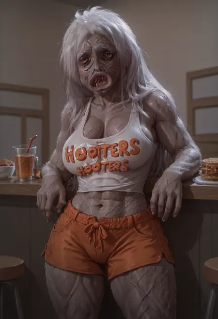 怪物,无人类,长发,白发,棕色眼睛,皱纹皮肤,牙齿