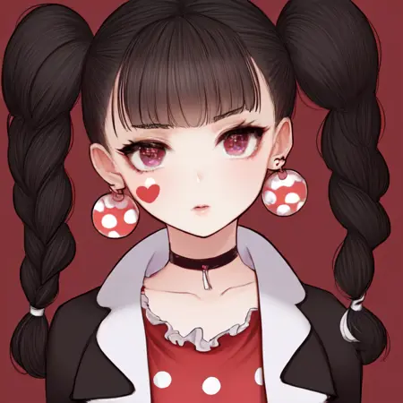 Illustrious lora available. Works on strength 1. The clown earrings do not generate consistently and the polka dot pattern on the dress can be iffy as well, sometimes it generates with very few polka dots, of which some may take the shape of a heart (prompt bleeding issue with the facial mark).