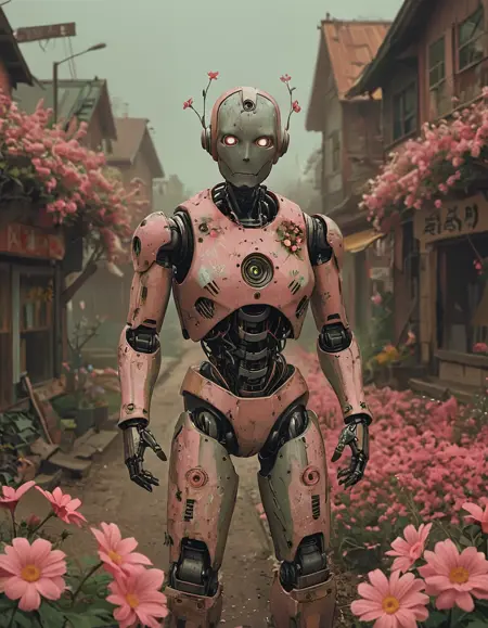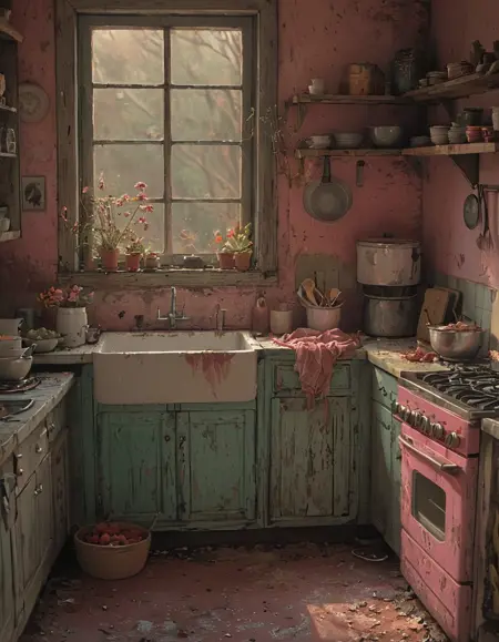 このポストアポカリプティックなスタイルでは、ピンクが支配的だ。老朽化した建物は自然に取り戻され、人々はぼろぼろのシャビーシックな服装を着ており、ピンクが至る所に広がっている。環境はぼんやりとして大気感がある。