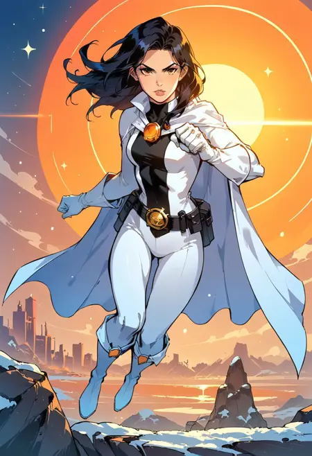 리부트(검은 직사각형과 망토가 있는 바디수트): 긴 머리, 흰 망토, 짧은 망토, costume2,