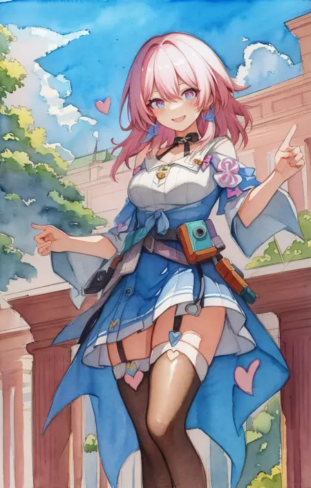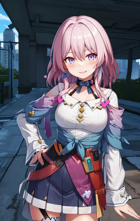 'March 7th (Honkai Star Rail)' - Example prompt, recommend adding (sleeveless) if you want other outfits without sleeves as well.