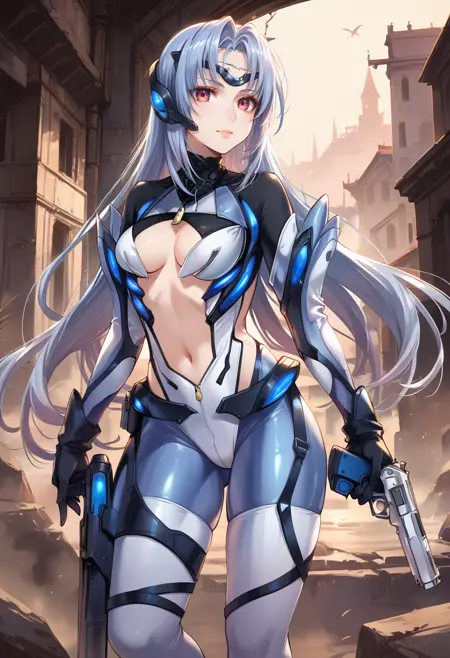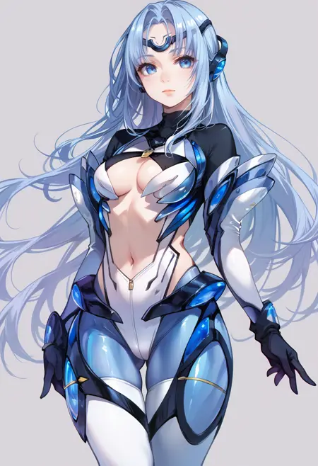 标签(服装):白色高腿紧身衣,白色额护,白色大腿长靴,白色肘部手套